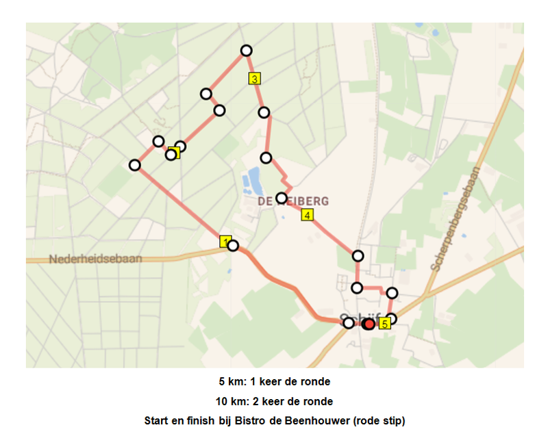 Het parcours voor de 5 km is 1 keer de ronde en voor de 10 km is het tweemaal deze ronde. De kidsrun is ongeveer 1 km.